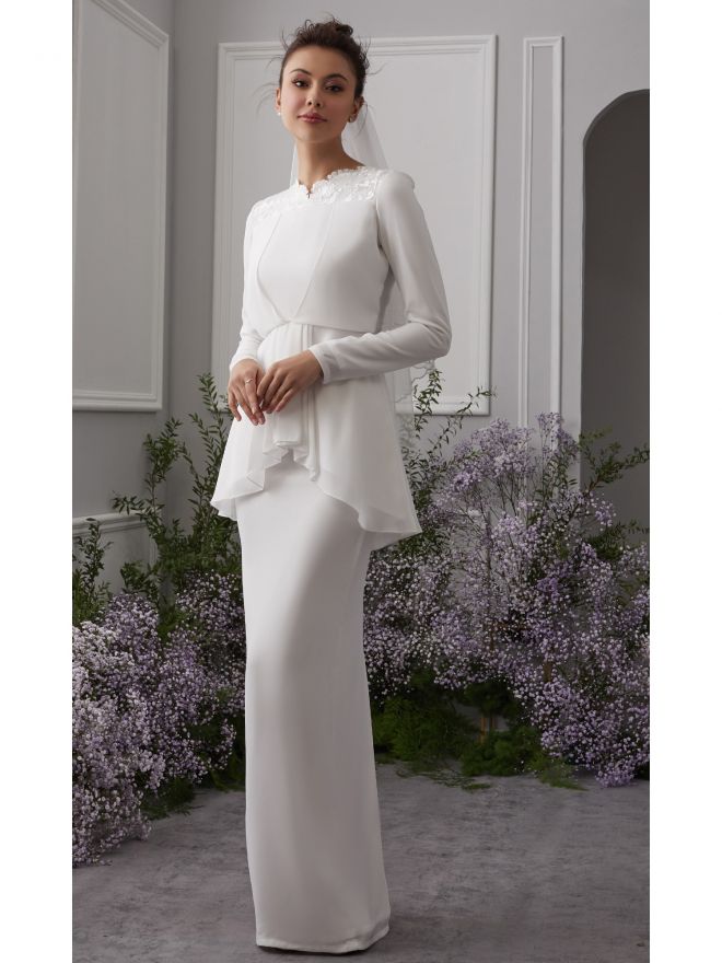 Wanzar Mareylla Brides Baju Kurung Peplum In Off White