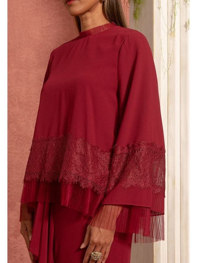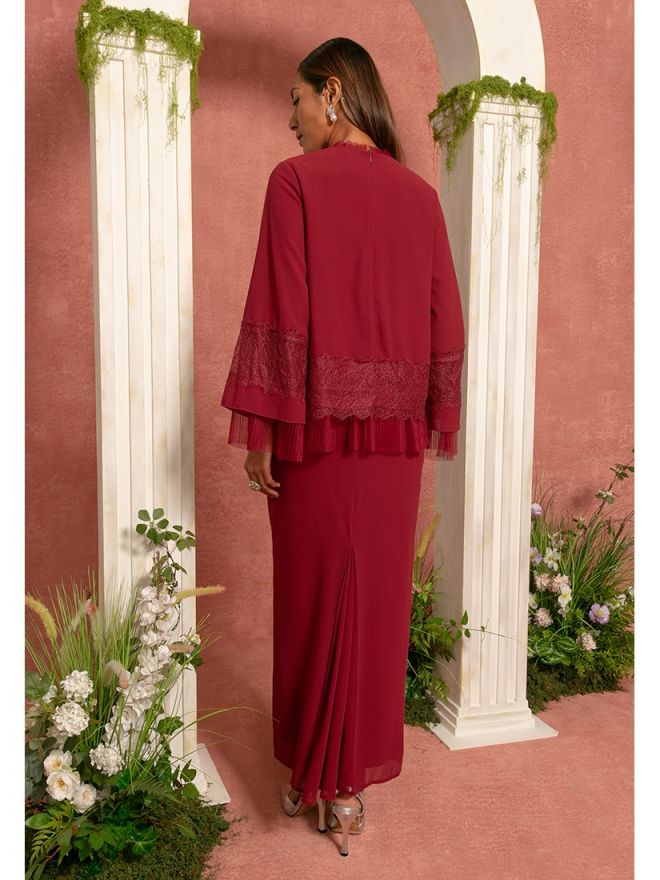 Zalia Recycled Chiffon Flare Baju Kurung Kedah Red Maroon